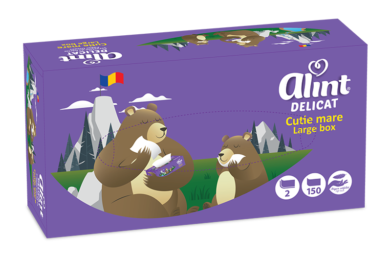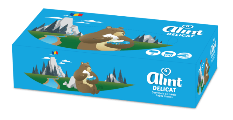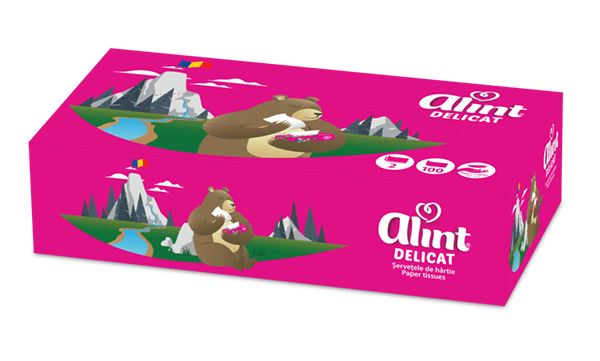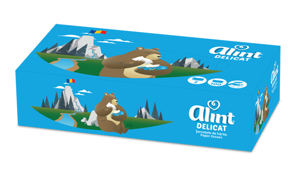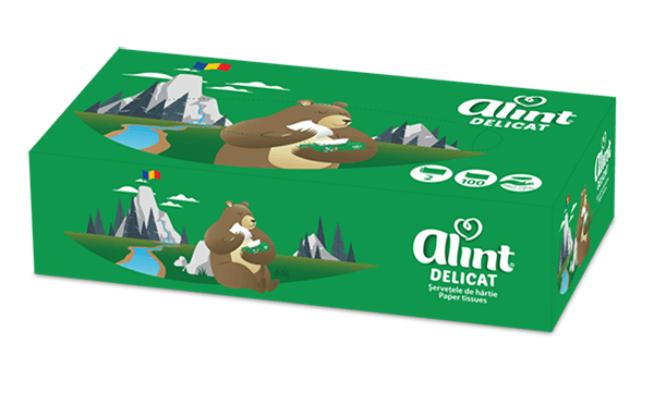 Șervețelele Alint sunt întotdeauna la îndemână, fie la birou, în mașină sau acasă. Acestea au un ambalaj practic, viu colorat, ușor de deschis și utilizat. Descoperă șervețelele faciale Alint, din hârtie fină, delicată și 100% celuloză.